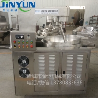 该设备主要由锅体、架体、搅拌系统、加热系统、调速传动装置、搅拌轴、锅体翻转系统等组成,采用一次冲压成型的半球形不锈钢锅体,采用蒸汽、液化气、天然气等加热形式,搅拌方式采用特殊的倾斜式传动,使用的行星式搅拌器与锅体充分接触,实现传动公转与自转的不整数传动比,使锅内无搅拌死角。使用先进的传动与密封结构,使传动部分与锅内洁净、卫生。采用变频调速动力,运行更平稳。采用液压升降,翻锅运料,免拆装搅拌器,节省人力,降低劳动强度,是性能优良的食品加工设备。