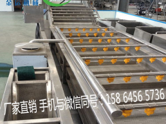 气泡清洗机是大枣,蔬菜,水产生产线中的重要产品,主要用于大枣,蔬菜,水产的清洗。气泡清洗机的原理主要是利用箱体前部分设备箱体中注适量的水,经过加热管将水温加热,原料在经过箱体时,会与气泡机和水的结合作用下做翻滚状态,并随网带不断向前推进,在出水面时,高端设有喷淋头,高压冲洗。