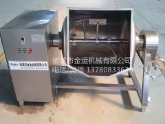 横轴搅拌炒锅的U形锅体顶部抽真空,夹套采用蒸汽加热,无段变速与蜗轮、减速机的组合传动,增大了横轴搅拌的办矩,采用聚四氟乙烯材质刮板的搅拌器,在物料的翻滚搅拌过程中,搅拌器与锅体的全方位充分接触,确保了无搅拌死角。锅体的开盖、卸料、复位采用液压、机械传动控制,操作极为方便。真空炒制可降低炒制温度,特别适应于热敏原料的炒制,避免了因过度受热引起颜色及口味的劣化,保持了原料原有的色、香、味。提高了炒制效率,并降低了能耗,缩短了炒制时间。